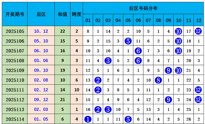 大乐透后区综合分析: