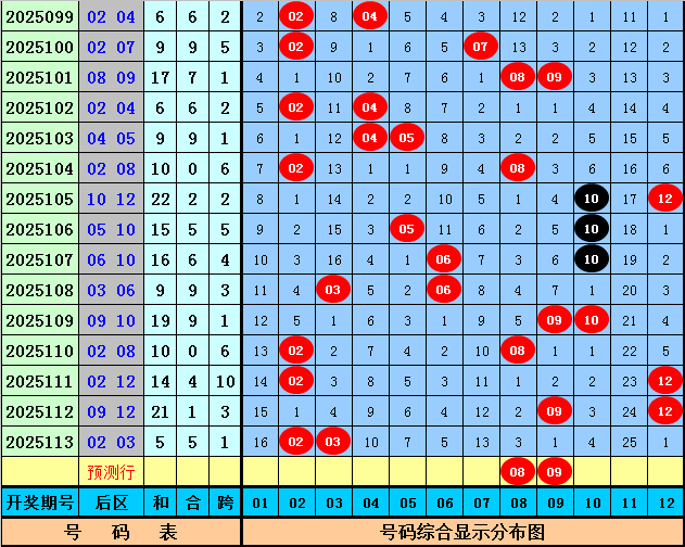 后区分析:上期后区为一奇一偶号码02+03,最近10期后区号码奇偶比为5:15,最近50期后区奇偶比为46:54,本期后区参考一奇一偶组合,关注两码08、09。