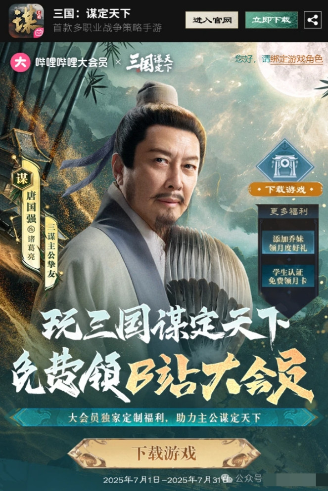 更贴心的是,通过活动页面下载的玩家,活跃 3 天且繁荣度到 4 万,能白嫖 3 天 B 站大会员;登录满 7 天且繁荣度 8 万,还能再拿周卡。边玩游戏边重温《三国演义》,这沉浸感直接拉满!